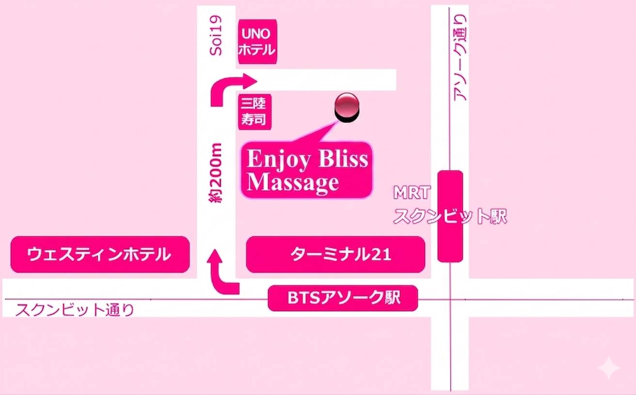 当店はアソークSoi19にありBTSアソーク駅から徒歩3分と近く、人目を気にせずご来店できるような立地にあります。
